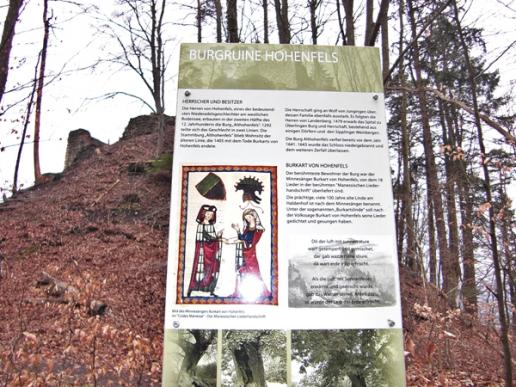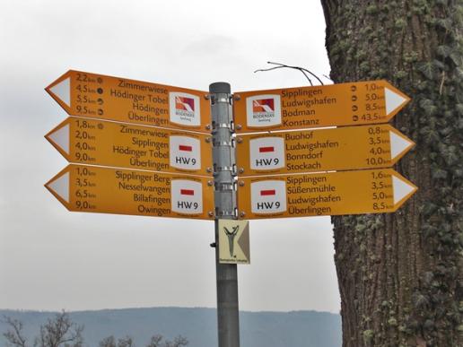Nach unserer Mittagsrast ging es dann durch den Ort Ludwigshafen und wieder auf unseren Wanderweg immer leicht ansteigend auf den Höhenweg in Richtung Sipplingen, vorbei an der Abzweigung Schnabelburg. (Unterwegs irritierte uns dann doch mal ein Schild von Forstarbeitern worauf geschrieben stand, dass die Wanderwegsperrung verlängert ist ‚’’bis zum 04.03.2016’’. Da wir aber schon den 12.03.2016 hatten, haben wir uns dazu entschlossen doch auf diesem Weg weiter zu gehen. Später sollte sich dann aber heraus stellen, dass auf den Schildern der Waldarbeiter kein Verlass ist. Es waren dann, fast am Ende des Wanderweges, noch Waldarbeiter am sägen und aufräumen. Und das an einem Samstag. Wir haben dann, so gut es ging, einen anderen Weg genommen). Nach dem diese Tortour überstanden war ging es dann weiter vorbei am Gehöft Buohof, am Haldenhof, an der Burg-Ruine Hohenfels und in die Ortschaft Sipplingen.