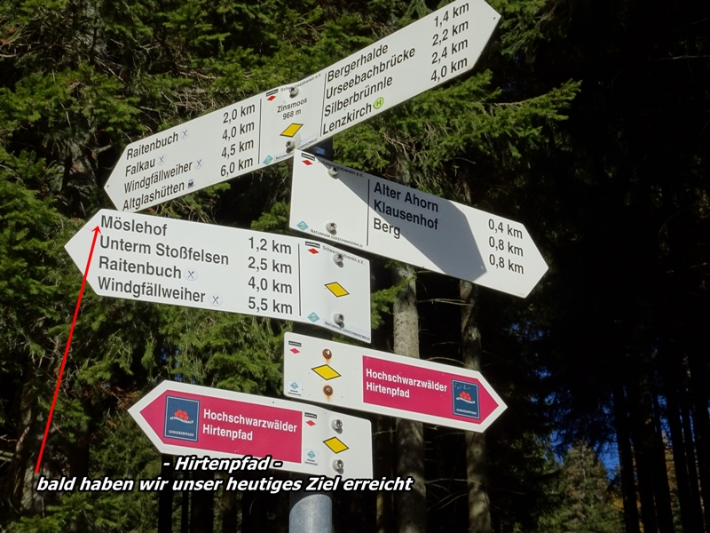 Wir, meine Frau und ich und ein befreundetes Ehepaar, begannen die Wanderung an der Raitenbucher-Strasse in der Nähe vom Möslehof.